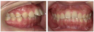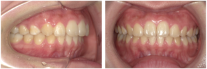 | 治療内容 | インビザラインで矯正治療を行った。上の奥歯を後ろに移動させる動きと、隣接面の削合によりスペースを獲得し、奥歯の噛み合わせを改善しながら、前歯の突出感を解消した。 |