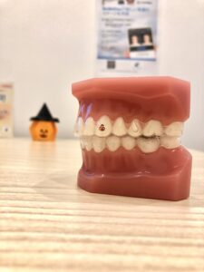 その反面、ワイヤー矯正のようにカラフルなゴムを使っておしゃれを楽しむといったことはできませんでした。(こんな感じです↓)