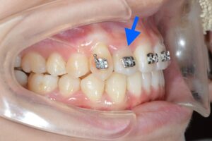 上の前歯には今までで一番大きなアタッチメントがドーンと付きます。