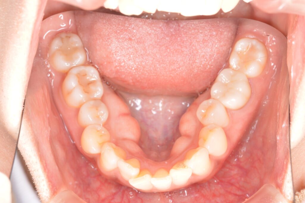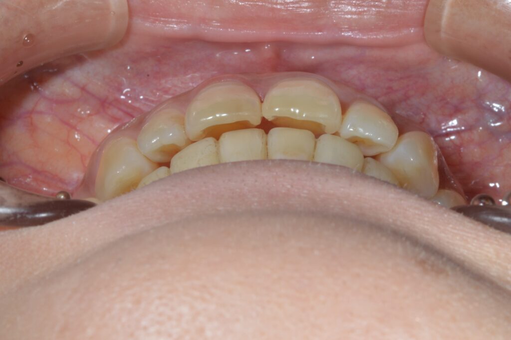 インビザライン(マウスピース矯正)にて上の前歯の重なりと下のデコボコを解消したケース