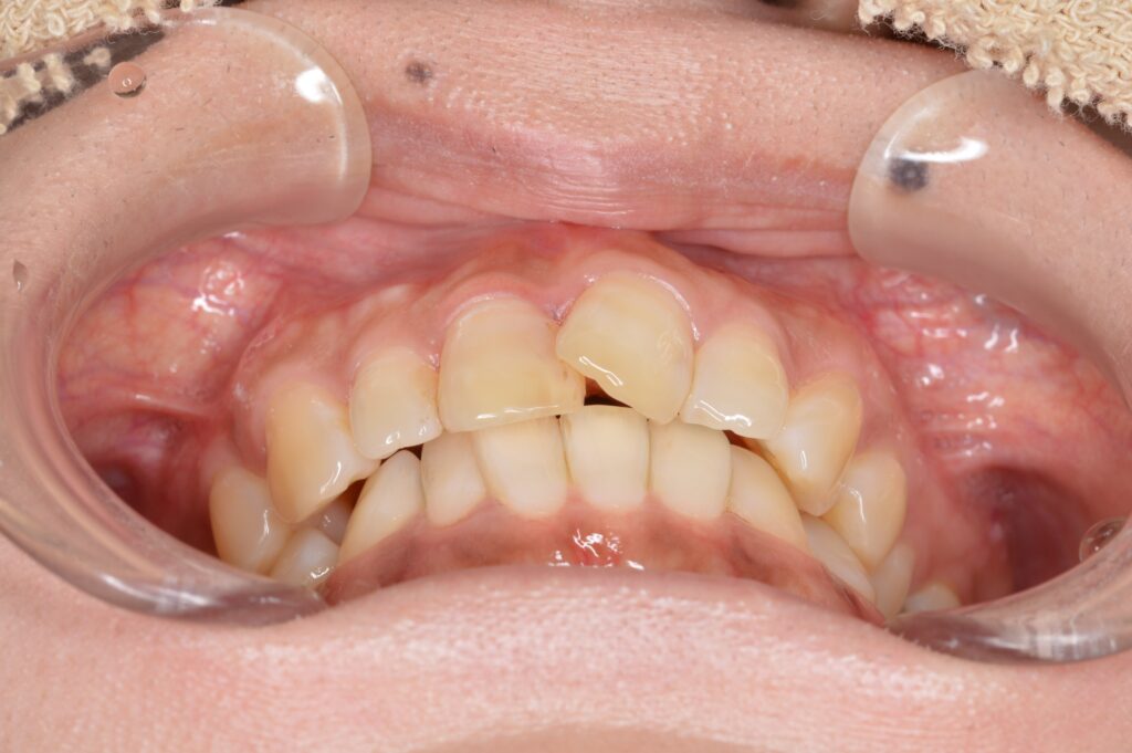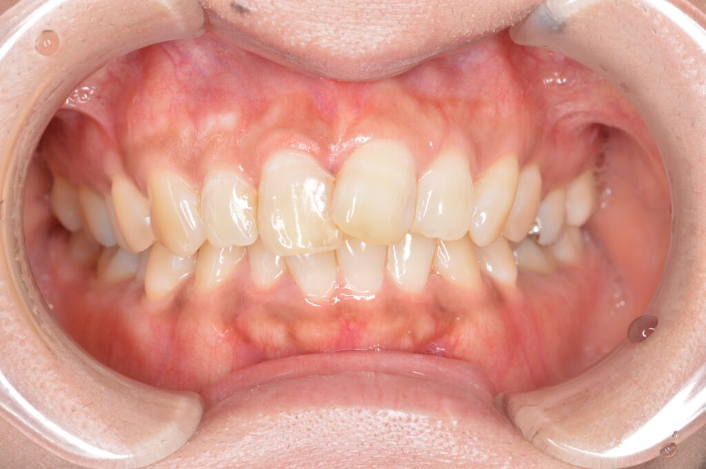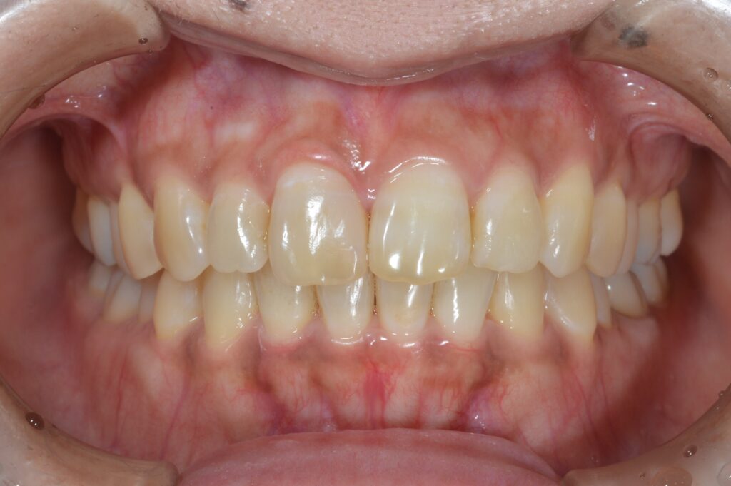 インビザライン(マウスピース矯正)にて上の前歯の重なりと下のデコボコを解消したケース