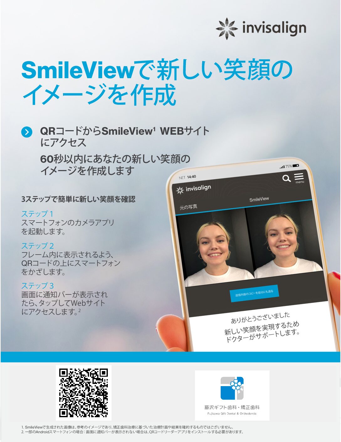 ⑥撮影後約60秒で新しい笑顔のイメージが表示されます!