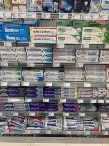 たくさんの歯磨き粉がありますが、フッ素は中止などされておらず、含まれておりました。公平のため付け加えておくと、日本と同様にフッ素無配合の歯磨き粉も販売されております。