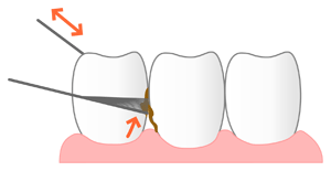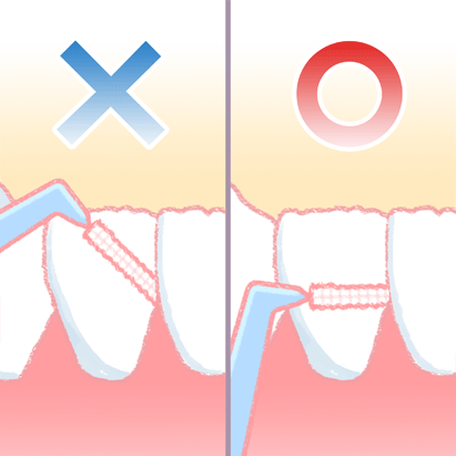 フロスを通することができたら、歯に密着させた状態で動かしてください。