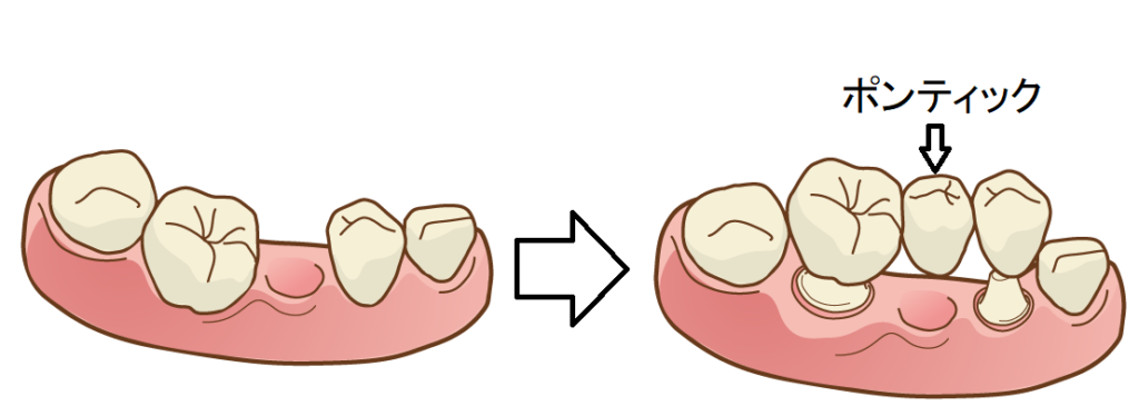 ブリッジには「ポンティック」と呼ばれるダミーの歯があり、連結しているので歯磨きがとても難しくなっています。