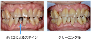 ステインはホワイトニングではなく、クリーニングで除去することが可能です。