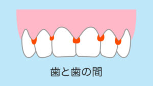 ②の歯と歯の間は、歯ブラシでは磨けません。フロスや歯間ブラシを通すことがすごく大切で、歯周病予防には必須です。