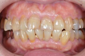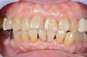 | 治療内容 | 全体的に歯石の沈着、歯茎の発赤・出血、腫脹がみられ、中程度の歯周病と診断。歯石・プラーク除去、歯磨き指導、また数回に分けてSRPを行った。 |