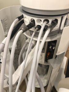 歯科医院で使用する歯を削る器具や、歯石を除去するための超音波器具はユニットと呼ばれる診療台とホースで繋がっており、そのホースの中を水や空気や電気が通ることで動きます。