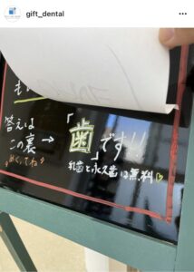 以前、当院の扉前に置いてあるブラッグボードに書いたものでインスタグラム@gift_dental にも載せたことがありますが、皆さんはこのなぞなぞの答えはわかりますか?