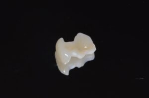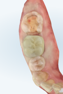 | 治療内容 | 右下の大臼歯に銀の詰め物が入っており、その脇から虫歯が発生していた。 虫歯の再発をなるべく抑えるために、セラミックによる治療を選択。 1回目に銀歯の除去、虫歯の除去、デジタル印象(型取り)を行い、2回目にセラミックインレーを装着。 |