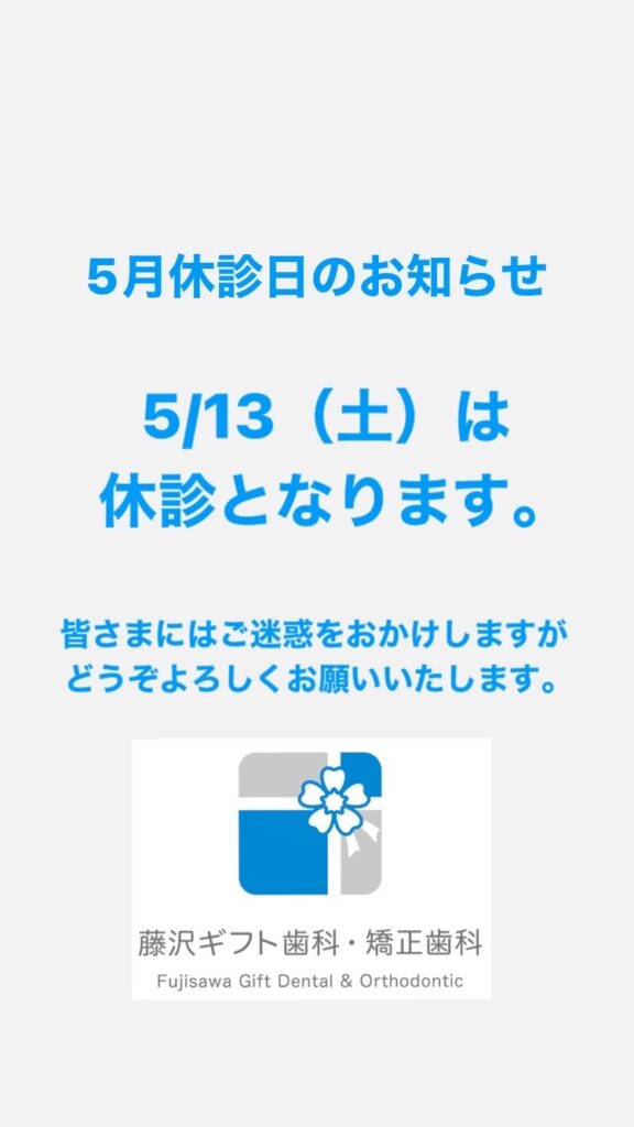 日曜・祝日・木曜(PM)・5/13(土)は休診となります。