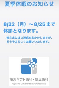 8月22日(月)〜8月25日(木)まで夏季休暇のため休診とさせていただきます。