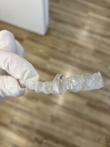 製造されたアライナーには顎間ゴムをかけるための切れ込みがないので、専用の道具を使って切れ込みを作ります!