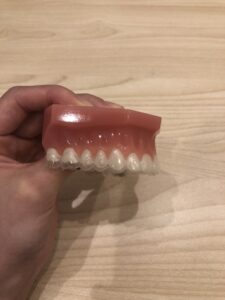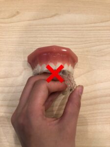 一気にベリベリっと外すと歯に負担がかかってしまうので、必ず奥歯から片側ずつ外し、最後はアライナーを両手で持って外しましょう。