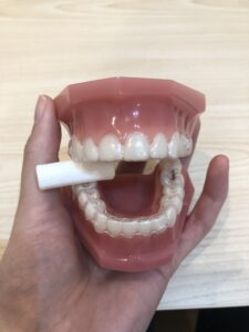 アライナーがはまったら、次は「アライナーチューイー」を噛みます。