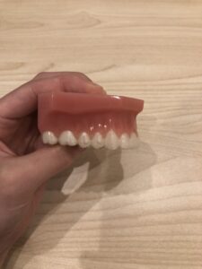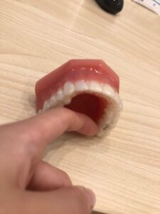 内側から指を入れ、奥歯から前歯にかけて外していきます。