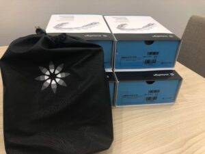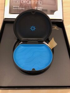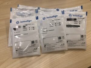 さて、そのアライナーはどのように届くかというと、こういった箱に治療計画分全てが詰められて届きます。かっこいいケースも付属しています。