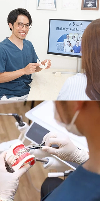 そして、これらの例以上に個々の患者さんにとって、もっと幸せに繋がるものがあればそれを見つけて、提供させていただきます。そういった治療を贈りたいと考え、医院名に「ギフト」とつけました。歯科医院での治療やメインテナンスを通した経験が今後の皆様の人生にプラスになるような歯科医療、つまりプラスになった分だけ幸せになれるような歯科医療をお贈りすることを目標に日々精進してまいります。